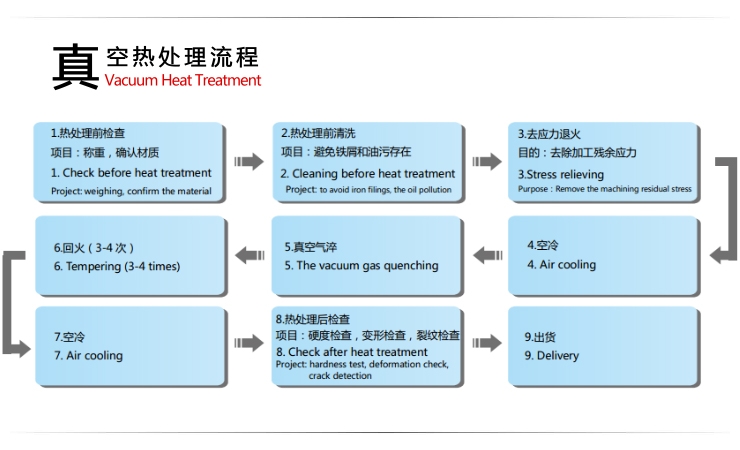 熱處理質(zhì)量的好壞直接決定模具壽命的長短,鉅研特殊鋼嚴格按照材料指定的熱處理工藝進行操作,確保熱處理工件質(zhì)量優(yōu)秀穩(wěn)定!